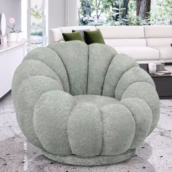 Luxury Nordic Teddy Velvet Lounge Chair – Green Single-Seater with Rotational Base