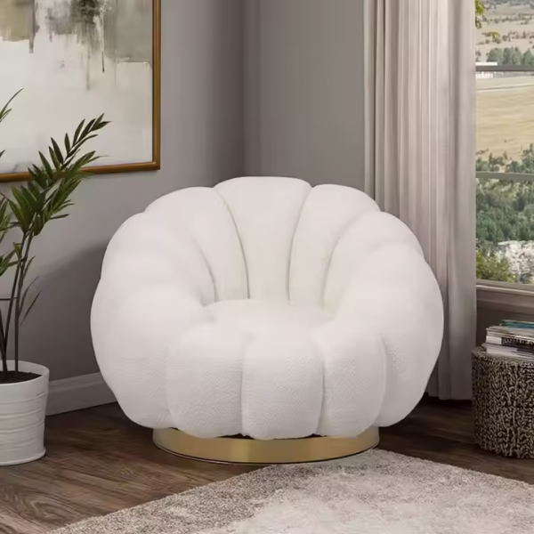 Luxury Nordic Teddy Velvet Lounge Chair – White Single-Seater with Rotational Base