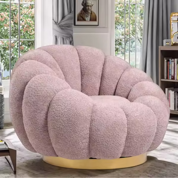 Luxury Nordic Teddy Velvet Lounge Chair – Pink Single-Seater with Rotational Base